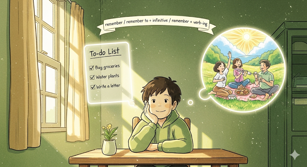 - 특히 "remember to + 동사원형"(잊지 않고 ~하다)과 "remember + 동사-ing"(과거 경험 기억)는 입시에서 반드시 구분해야 할 포인트입니다.