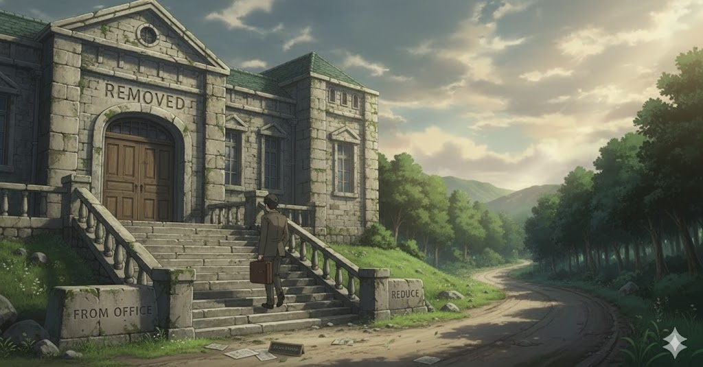'공식적인' '직위'(office)나 '권한'(authority)을 가진 '사람'을 '잘못'(fault), '불법'(illegal) 행위, 또는 '무능'으로 인해 '강제적으로' **'해임'**시키는 행위를 의미합니다. '정부'(government)나 '조직'(organization)의 '책임성'(responsibility) 강화에 초점이 맞춰져 있습니다.