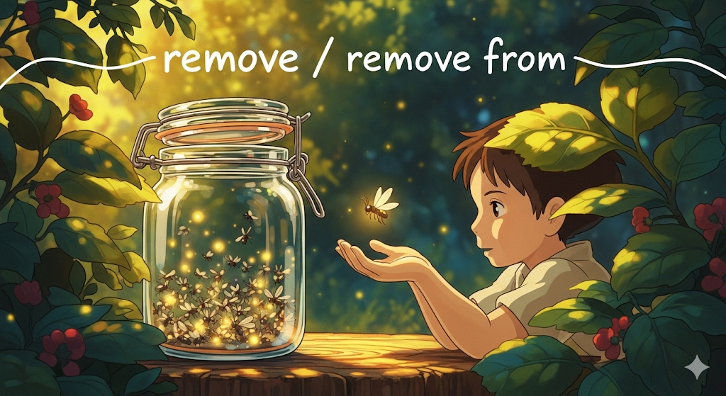 - 구동사 및 숙어(예: remove from, get rid of, take out)와 함께 숙지하는 것이 문맥 이해에 필수적입니다.