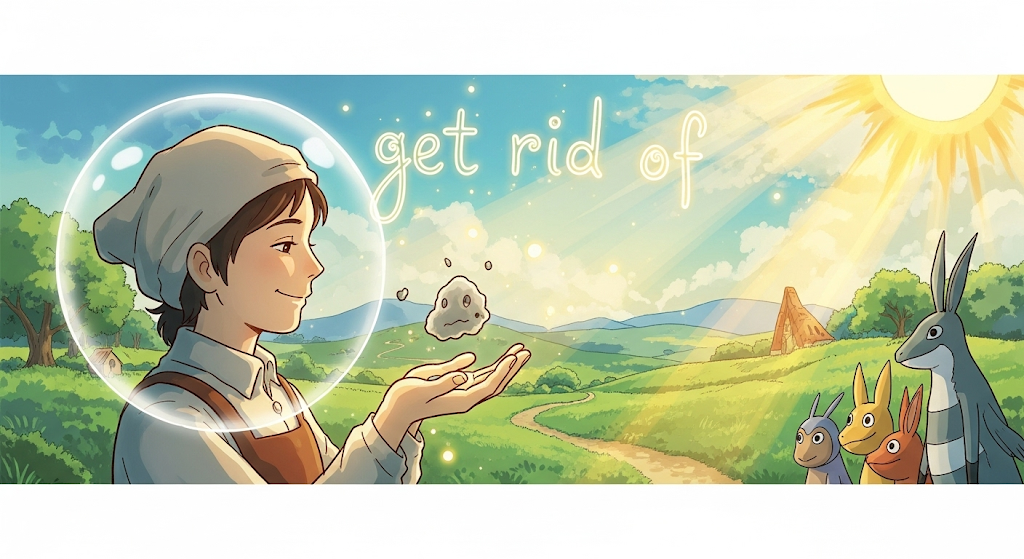 'get rid of'는 원하지 않는 것을 완전히 제거하여 더 이상 그것에 대해 신경 쓰지 않게 되는 상태를 의미하는 구동사입니다.