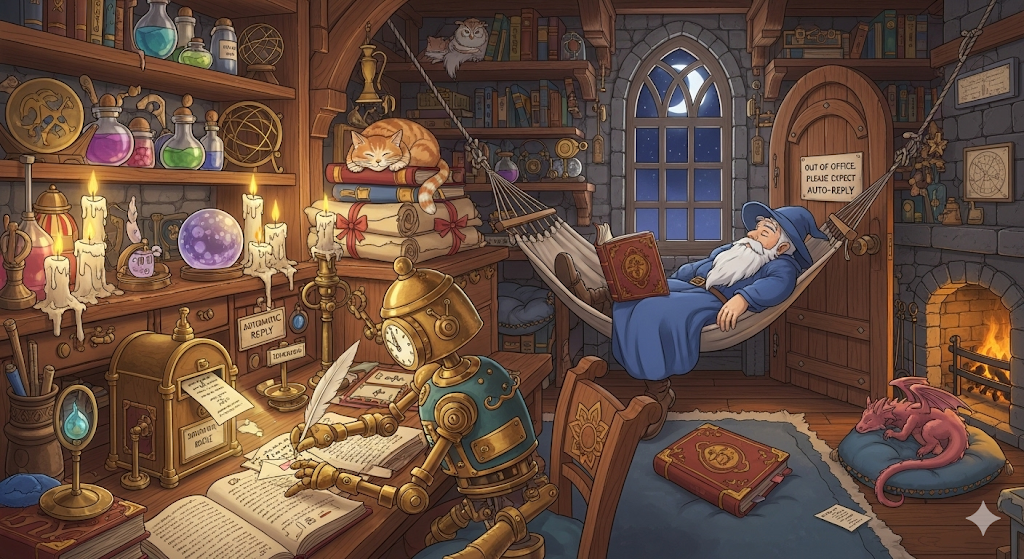 - 예문: An auto-reply was sent while the manager was out of office.