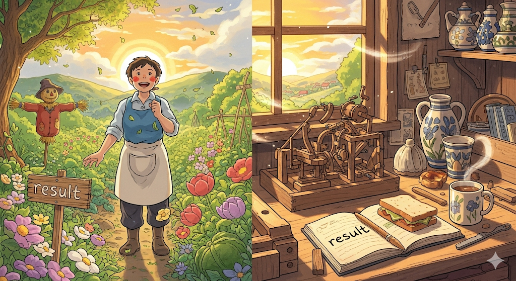 '특정' '활동'(activity), '행위'(action), 또는 '원인'(cause)에 '뒤따라', 혹은 '그것'을 '통해', '최종적으로' '나타나는', '결론'(conclusion), '효과'(effect), 또는 '성과'(achievement)를 의미합니다. '시험'(exam) 성적, '실험'(experiment) 결과, 또는 '사건'(event)의 귀결 등 인과관계의 산출물에 초점이 맞춰집니다.