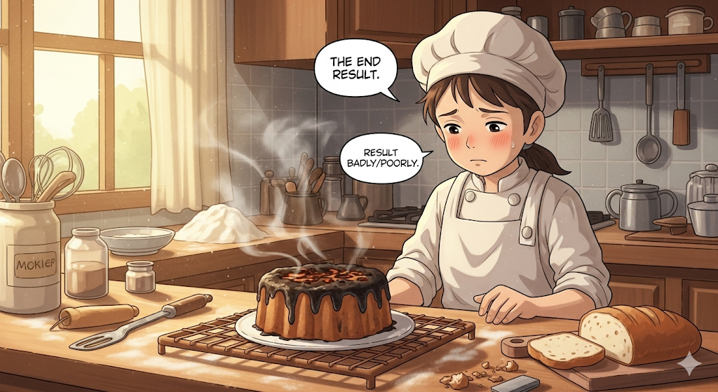 'the end result'는 최종 결론을, 'result badly/poorly'는 부정적인 결과를 강조하며, 둘 다 과정보다는 결과의 상태에 초점을 맞춥니다.