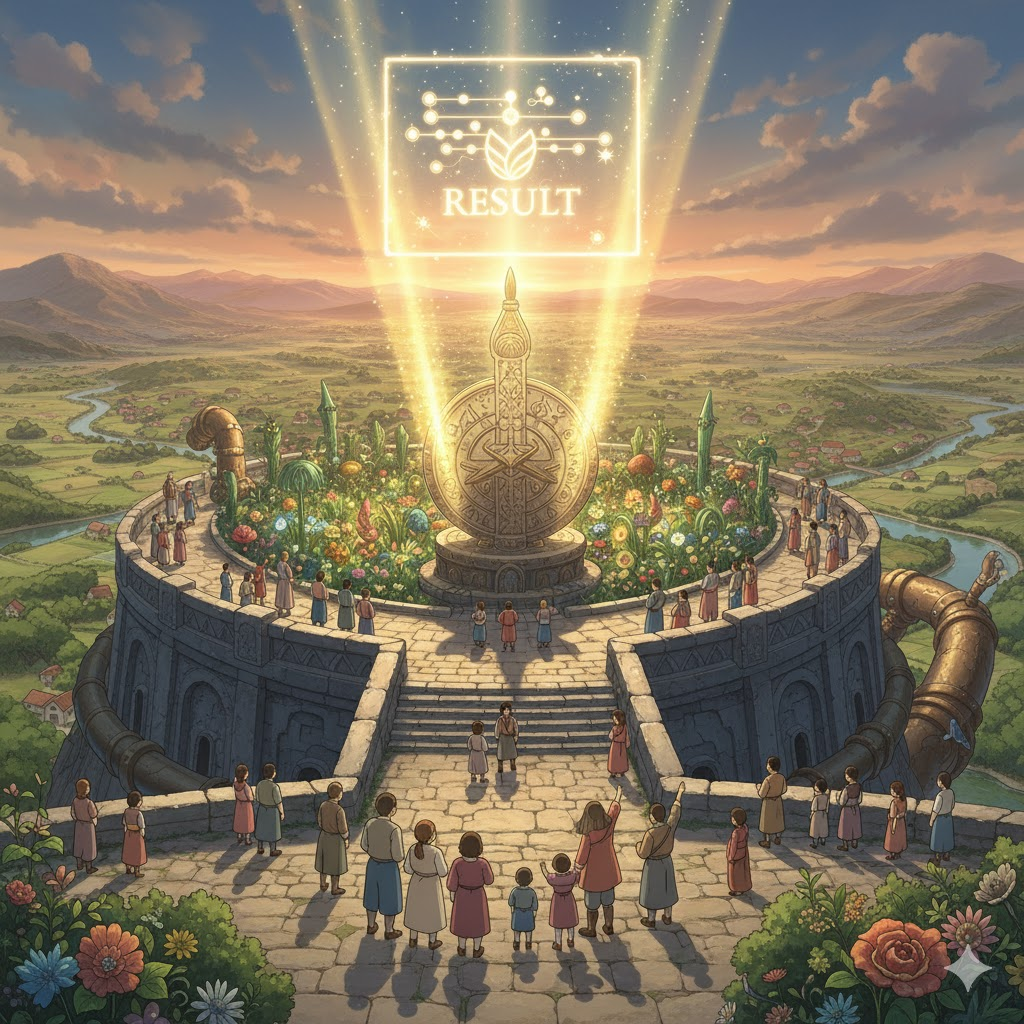 '일련'의 '과정'(process)이나 '활동' 끝에 '도출'된', 혹은 '결정된', '마지막' '결과'(result)를 의미합니다. '중간' **'단계'**의 결과나 '부분'적인 성과가 아닌, '최종적인' '성과' 또는 **'결말'**에 초점이 맞춰집니다.
