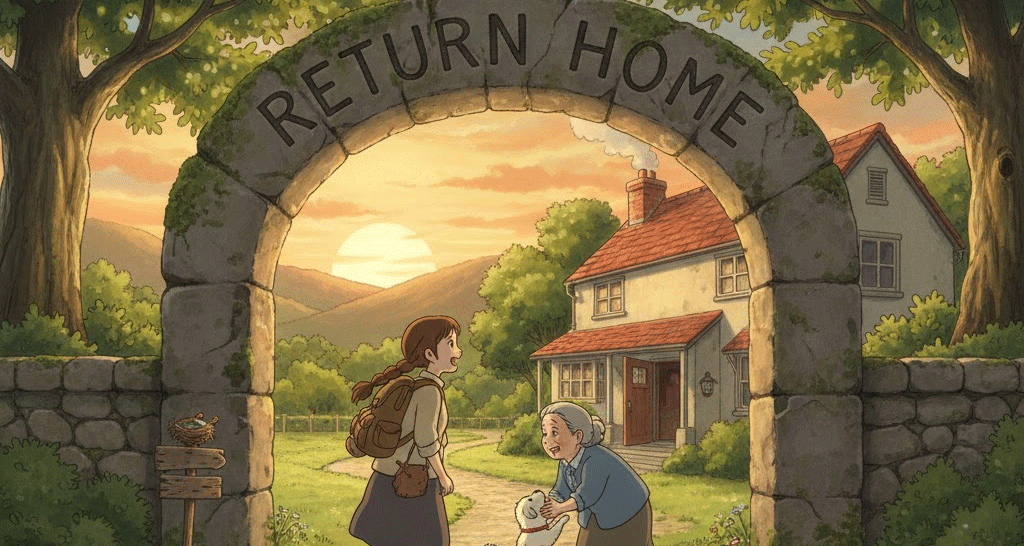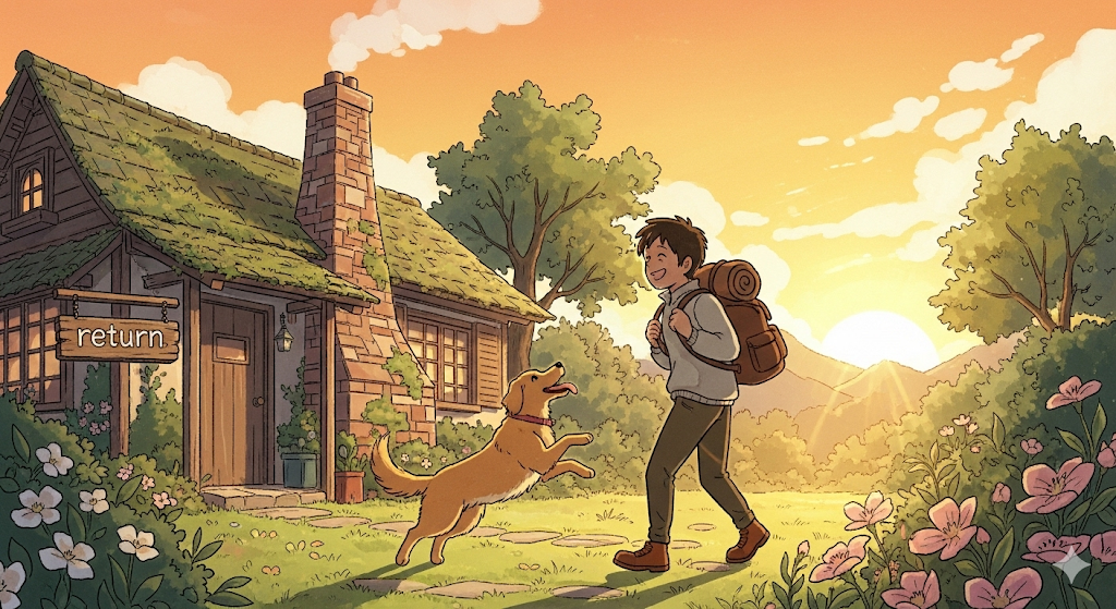 - (명사) 귀환, 복귀: 어떤 장소나 상태로 되돌아가는 행위.