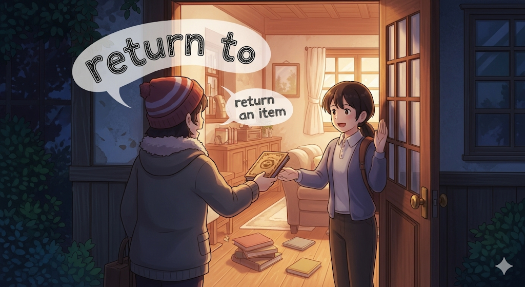 - "return to", "return a favor", "return an item" 등 자주 쓰이는 구동사를 함께 익혀야 합니다.