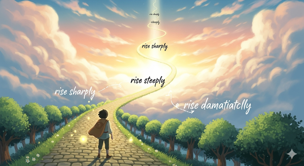 이 표현들은 'rise'가 나타내는 상승이 단순한 증가가 아닌, 속도나 정도 면에서 매우 빠르고 극적임을 강조할 때 사용됩니다.