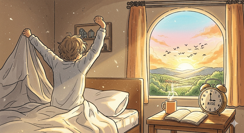 - 예문: The sun rises in the east every morning.