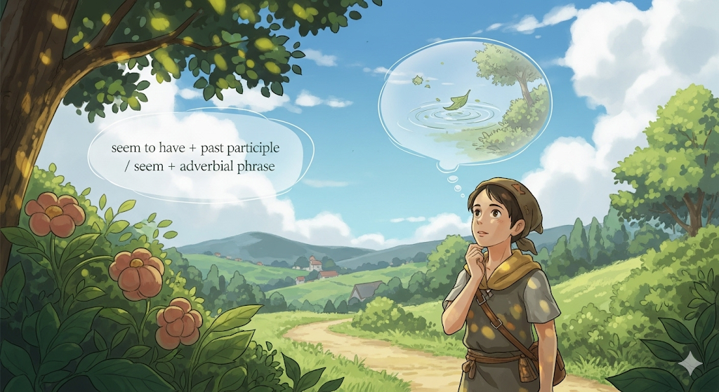 seem to have + 과거분사는 '과거에 ~했던 것 같다'는 의미로, 과거의 사실이나 행동에 대해 추측할 때 사용합니다. 현재의 인상을 바탕으로 과거를 추정하는 뉘앙스입니다. seem + 부사구는 '어떤 식으로' 또는 '어디에 있는' 것처럼 보이는지를 나타내며, 특히 장소나 태도를 설명할 때 유용합니다.