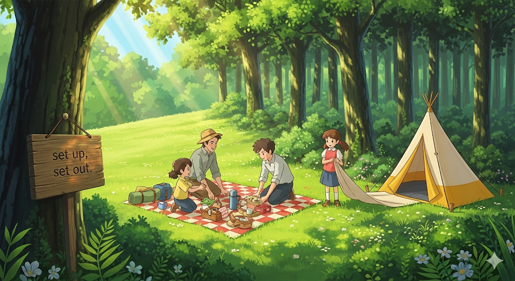이 두 구동사는 모두 어떤 활동이나 과정의 '시작'과 관련이 있습니다. set up은 물리적인 구조물(텐트, 장비 등)을 '설치하거나' '준비하는' 것을 의미합니다. 또한, 사업이나 조직을 '설립하는' 의미로도 쓰입니다. set out은 '여행이나 모험을 떠나다' 또는 '어떤 목표나 과제를 시작하다'는 의미를 가집니다.