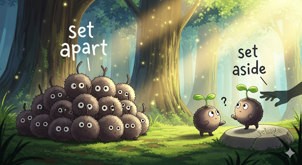 이 두 구동사는 모두 무언가를 다른 것과 '분리'하는 뉘앙스를 가집니다. set apart는 어떤 것을 '특별하게 만들거나' '다른 것과 구별되게' 만드는 것을 의미합니다. set aside는 물건, 시간, 돈 등을 '나중을 위해 따로' '남겨두는' 것을 의미합니다.