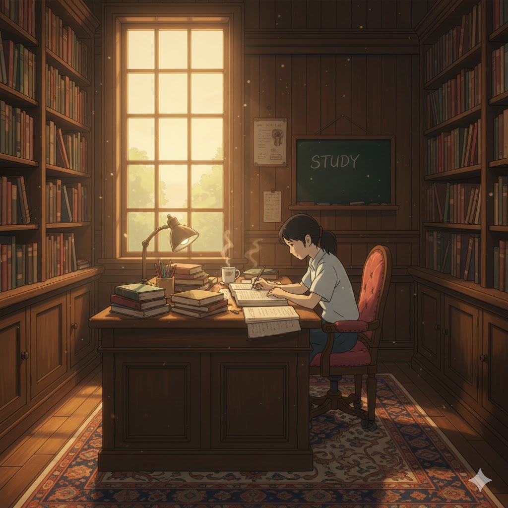 - (명사) 서재, 연구실: 공부하거나 연구하는 데 사용되는 방.