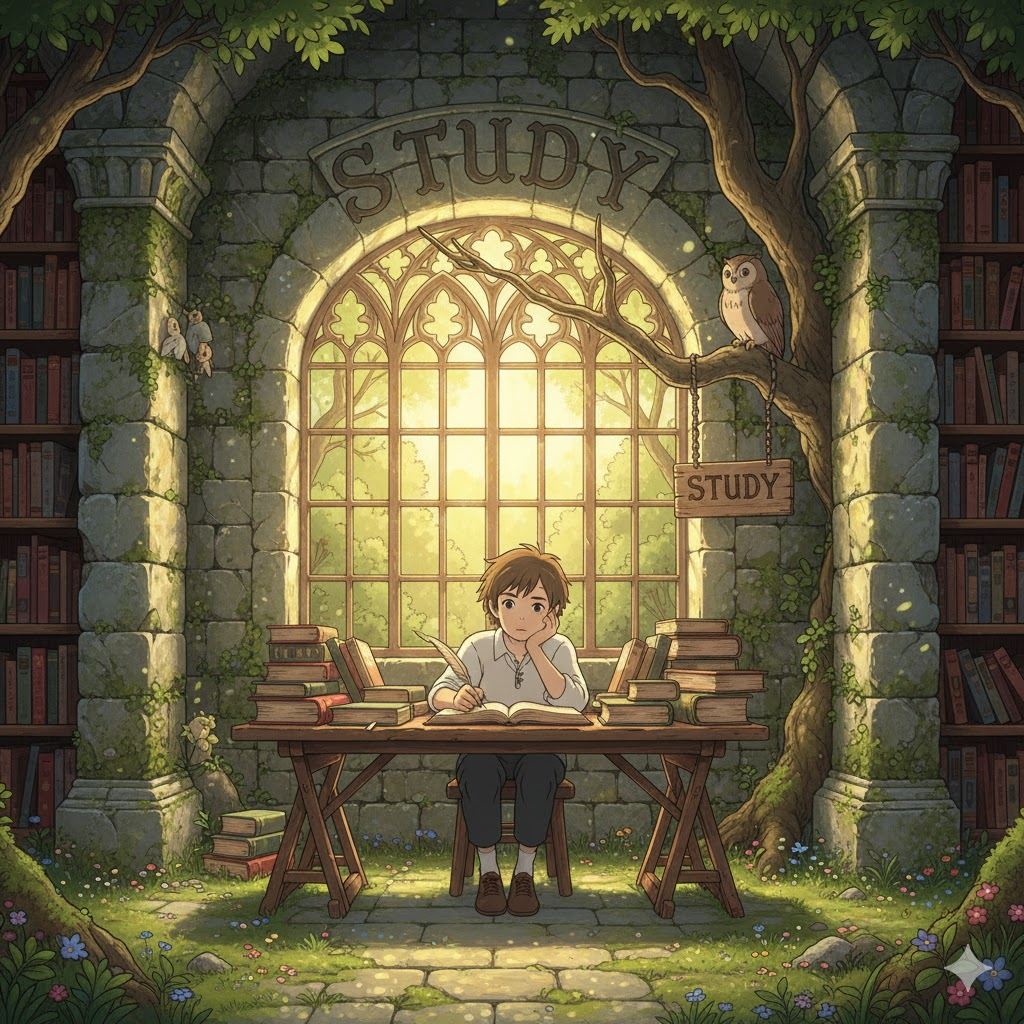 라틴어 studium ("열정, 열성, 연구")에서 유래 → 원래 **'무언가에 대한 열정이나 노력을 기울여 배우는 것'**을 의미했음 → 이 의미가 현대 영어에서 '지식을 얻기 위해 배우거나 탐구하는' (공부하다, 연구하다) 동사로 발전함. 나아가 '어떤 것을 깊이 있게 관찰하고 분석하는' (조사하다, 분석하다) 의미를 가지게 되었어요. 명사로는 이러한 '학습 또는 탐구 활동' (연구, 학업)이나 '공부하는 공간' (서재, 연구실)을 나타내요. 즉, **'지식을 습득하거나 특정 주제를 깊이 파고드는 모든 종류의 학습 및 탐구 활동'**을 나타내는 핵심 단어예요.