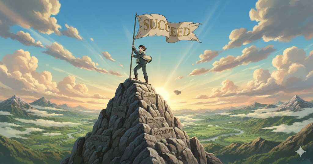 성공의 방식/태도/계획. 성공이 어떻게 이루어졌는지, 혹은 어떻게 될지에 대한 다양한 관점을 나타냄.