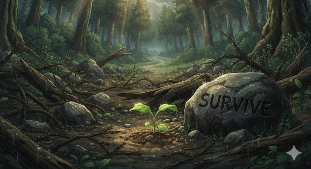 '어떤' '위험'(danger), '재난'(disaster), '질병'(disease), 또는 '어려움'(difficulty)의 '상황'(situation)을 '겪은' 후에도 '계속'(continue) '살아남거나', '존재'(existence)하는 행위를 의미합니다. 단순히 '목숨'을 '유지'(maintain)하는 것을 넘어, '사라지지' 않고 '끝까지'(end) '버텨내는' '강인함'(strength)과 '적응력'(adaptability)에 초점이 맞춰집니다.