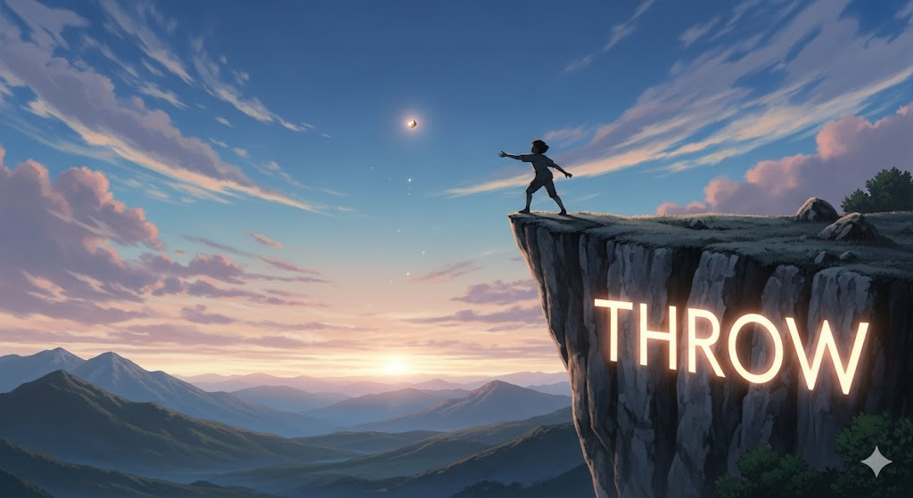 팔이나 손을 빠르게 움직여 물체를 공중으로 힘 있게 보내는 행위를 의미합니다. 단순한 놓기(drop)나 주기(give)와 달리, 의도적인 **투사(projection)**의 의미가 강합니다. 물건을 버리거나(쓰레기 등), 비유적으로 파티를 '열거나' 질문을 던질 때도 사용됩니다.