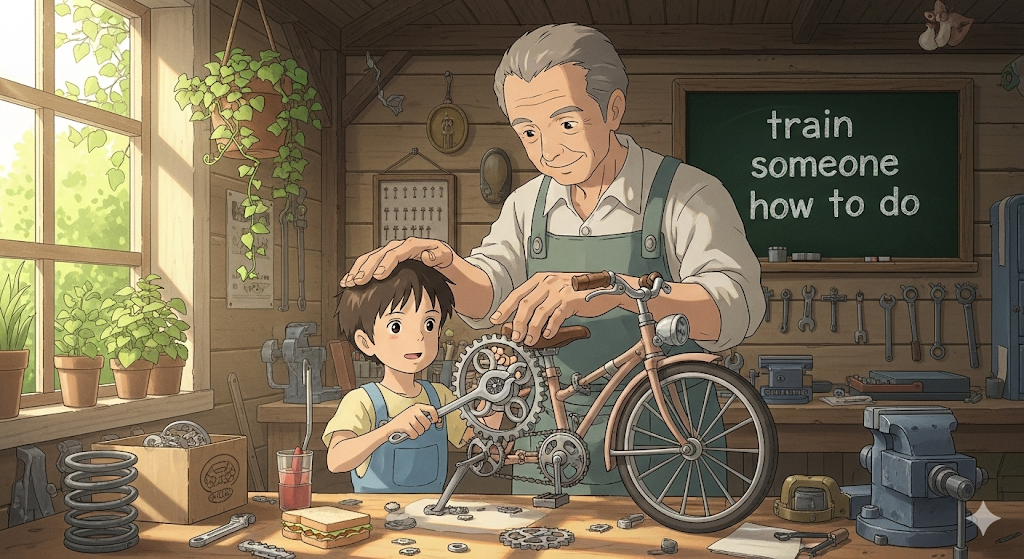 train someone how to do [treɪn ˈsʌmwʌn haʊ tuː duː ˈsʌmθɪŋ]