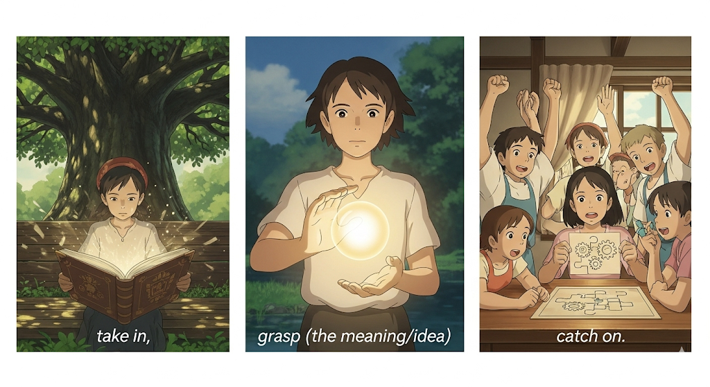 이해를 획득하다. 정보나 개념을 흡수하여 파악하는 것.