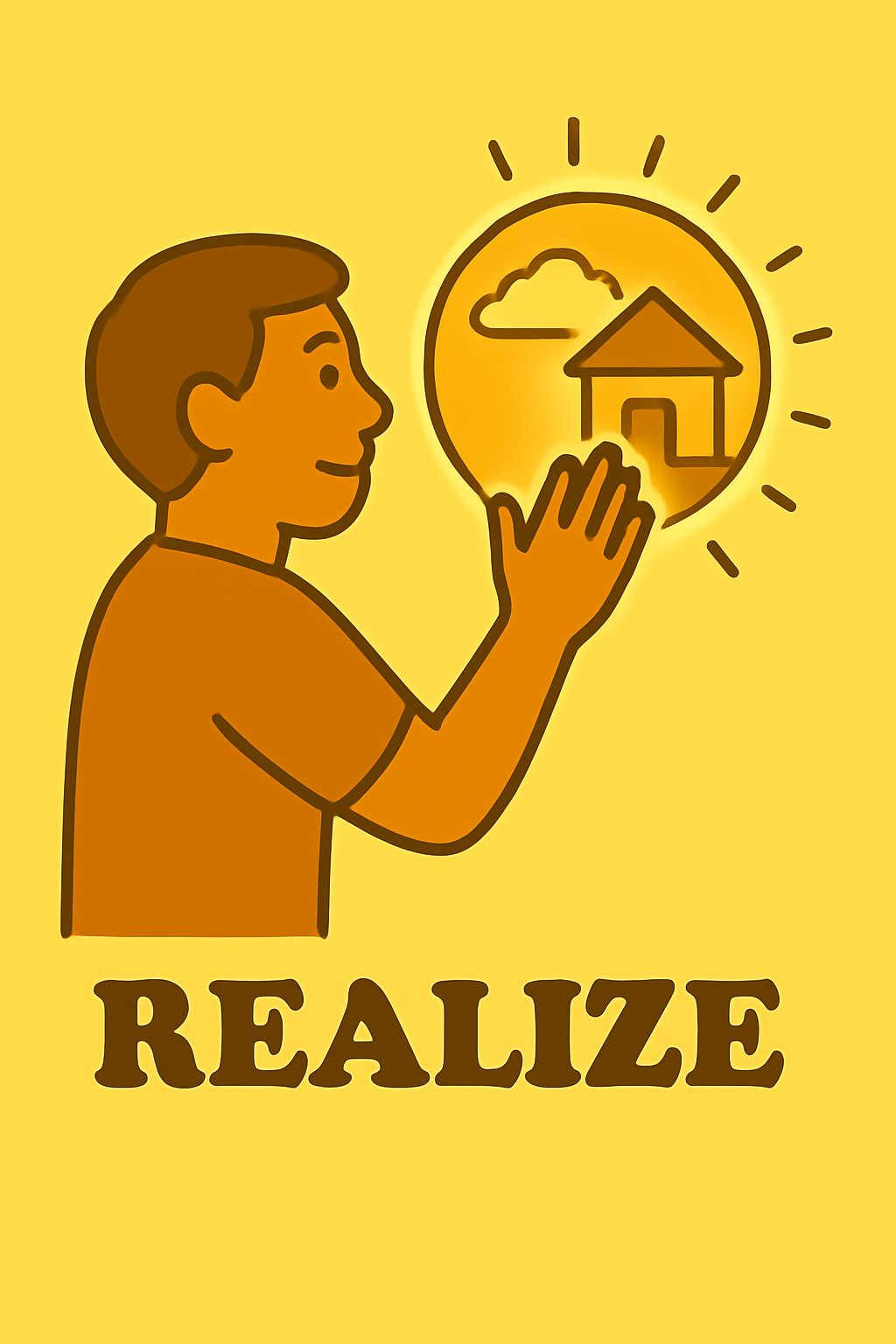 직역: "Realize - 꿈, 기대 등등이 현실에서 사실이 되도록 만드는 것."