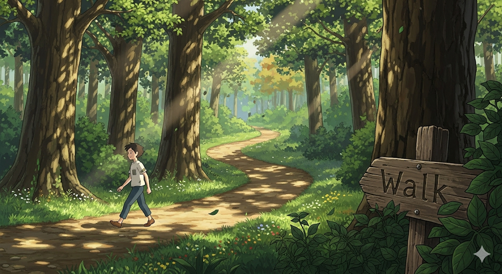 '발'(foot)을 '사용'하여 '움직임'(movement)을 '느리게'(slowly) '진행'(progress)하는 '행위'를 의미합니다. 단순히 '이동'(transport) 수단을 '이용'하는 것이 아닌, '신체적'(physical) '활동'(activity)이나 '산책'(stroll)과 같은 '여가'(leisure) 목적의 '걷기'에 초점이 맞춰집니다.