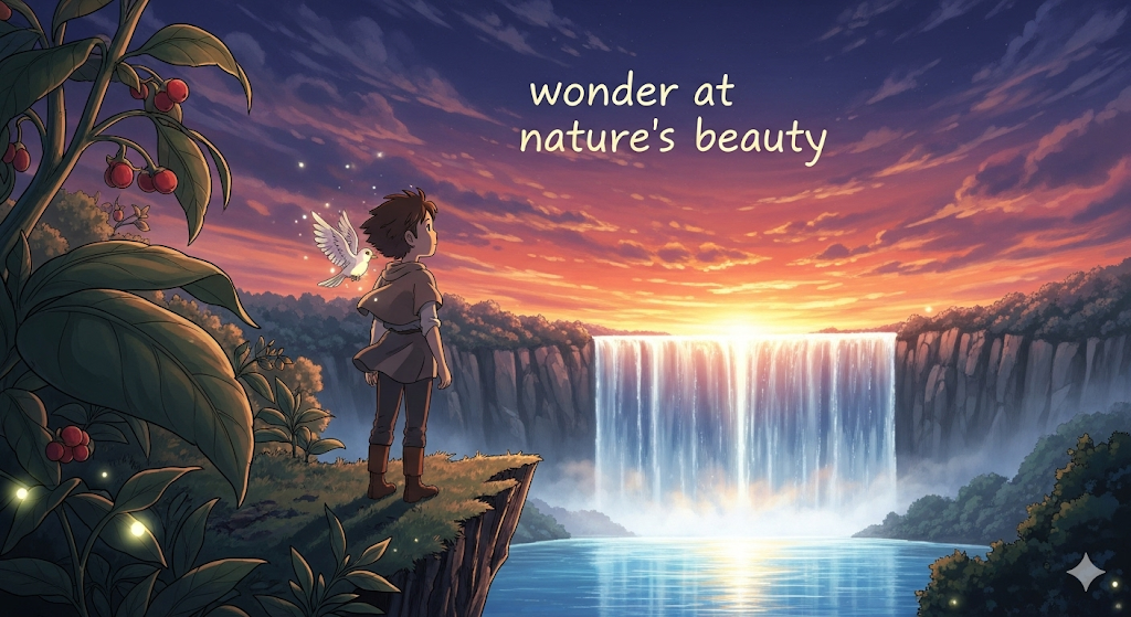 'wonder at'는 어떤 것에 대해 깊은 감탄, 경이, 또는 놀라움을 표현하는 것을 의미합니다. 이는 주로 아름답거나 웅장하고 인상적인 광경이나 사건을 보거나 경험할 때 느끼는 순수한 감동을 강조합니다. 이는 감정적으로 압도되어 넋을 잃고 바라보는 긍정적인 느낌을 담고 있습니다.
