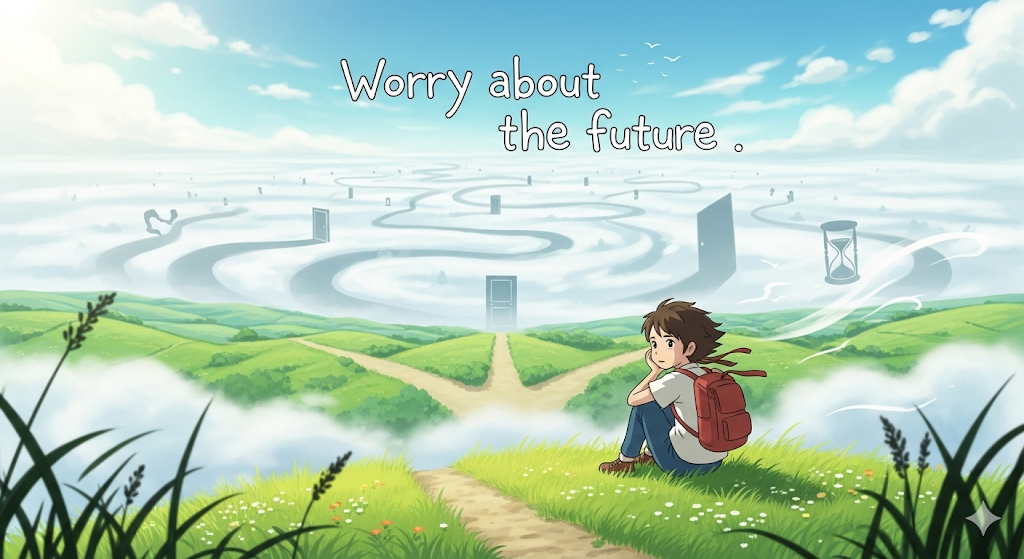 | about the future | 미래에 대해 | 전치사구로, '걱정' '의' '대상이' '아직' '오지' '않은' '시간' '임을' '나타냄'. | 명시된 '시간' '이' '진로,' '재정,' '건강' '등' '다양한' '불안' '의' '원인이' '됨' '을' 구체화. |