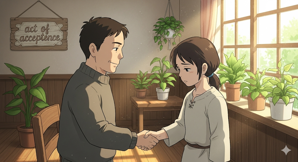 '다른' 사람(person)의 '제안'(offer)이나 '조건'(terms)을 '기꺼이'(willingly) '받아들이는'(receive) 행위를 의미합니다. 단순히 '수락'하는 것을 넘어, '상황'(situation), '사실'(fact), 또는 '사람'을 '있는' 그대로 '받아들이는'(tolerate) '용인'(tolerance)의 태도나, '사회'(society)적인 '인정'(recognition)과 '포용'(inclusion)을 뜻하기도 합니다.