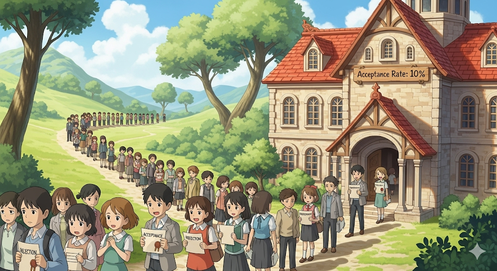 - *'acceptance rate'**는 주로 교육, 채용 등 경쟁률을 논할 때 사용되는 통계 용어입니다.
