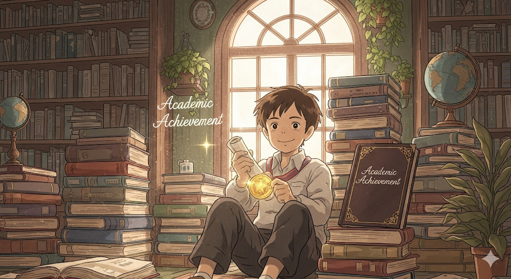 - (그녀는 뛰어난 학업 성취로 인정받았습니다.)
