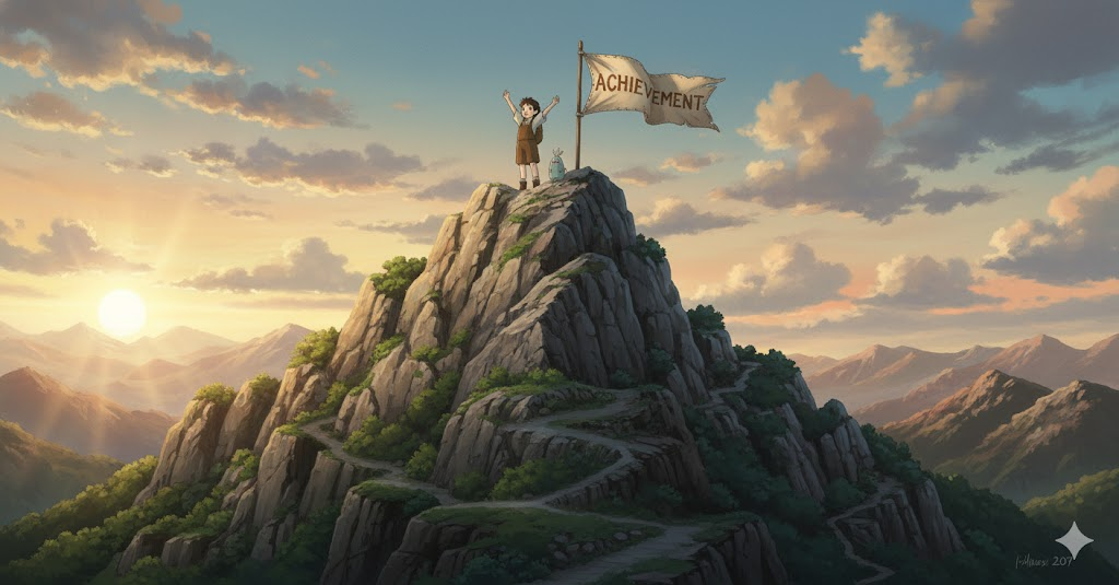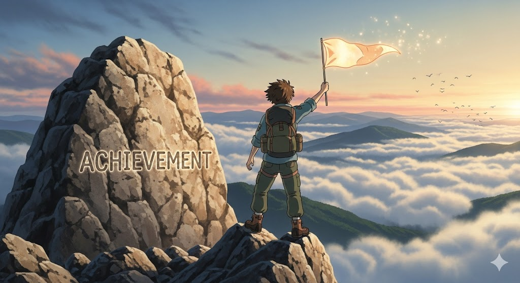 다른 사람의 평가나 인정과는 상관없이, 스스로가 세운 목표를 달성하거나 어려움을 극복하여 얻은 성공을 의미합니다. 내면의 만족감과 자기 발전을 강조합니다.