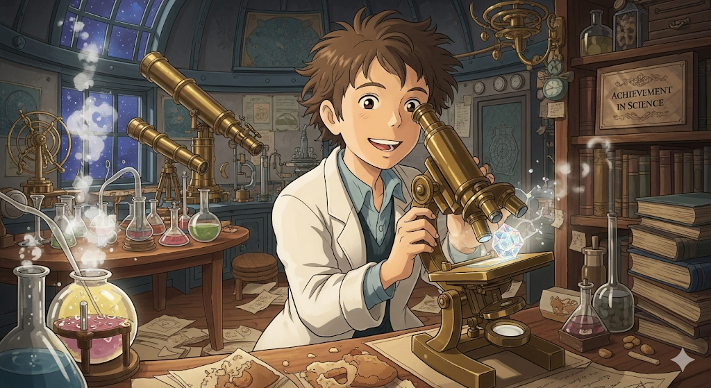 - (그녀의 과학 분야 성취는 인상적이다.)