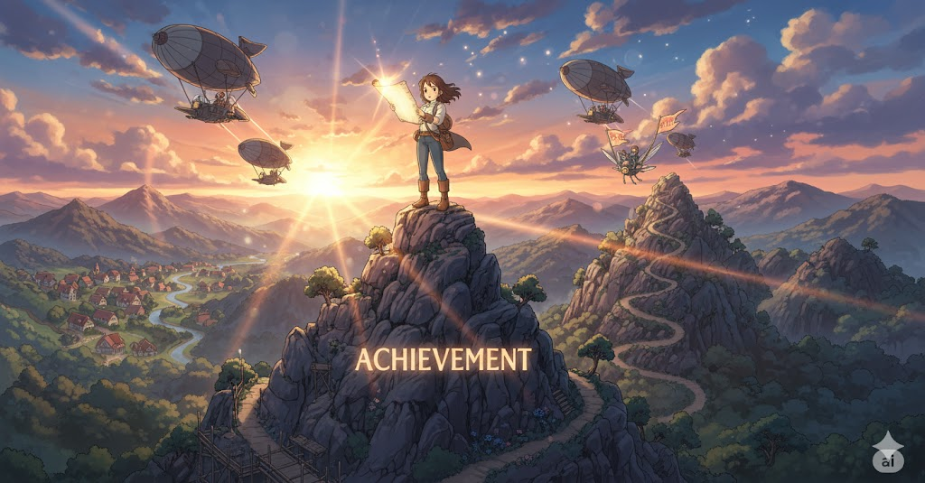 고대 프랑스어 achevement ("완성, 끝, 달성")에서 유래 → 동사 achever ("완성하다, 끝내다")에서 파생 → 원래 **'어떤 일을 완전히 끝내거나 성공적으로 완수하는 것'**을 의미했음 → 이 의미가 현대 영어에서 '노력과 기술을 통해 목표를 성공적으로 달성하는' (성취, 달성) 명사로 발전함. 나아가 '특별히 뛰어나거나 중요한 성공이나 공헌' (업적, 공적)의 의미를 가지게 되었어요. 즉, **'목표를 이루거나 뛰어난 결과를 만들어내는 모든 형태의 성공적인 결과물'**을 나타내는 핵심 단어예요.