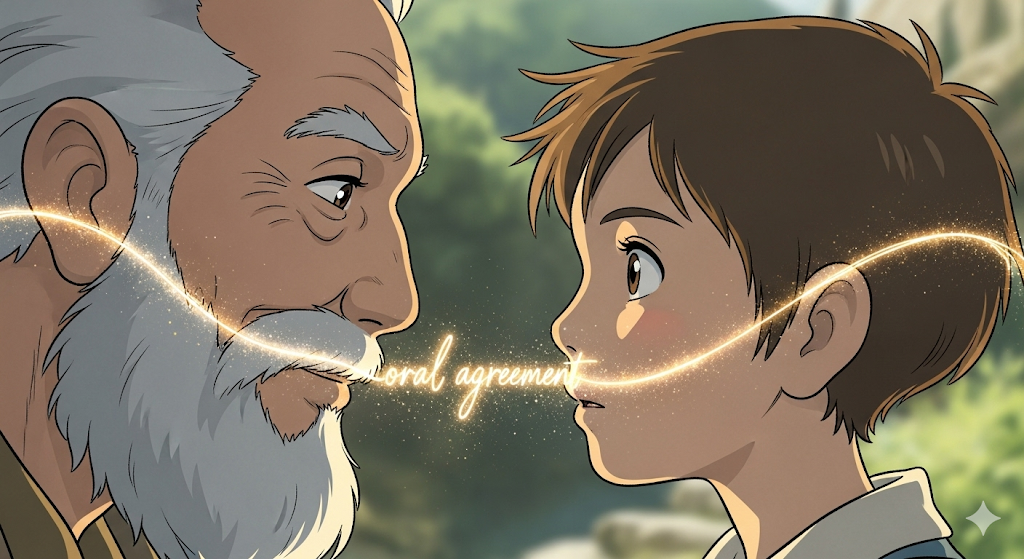 서면 문서 없이 말로만 이루어진 약속이나 합의를 의미합니다. 신뢰를 바탕으로 한 비공식적인 약속임을 강조하며, 때로는 법적 구속력이 약할 수 있다는 뉘앙스를 포함합니다.