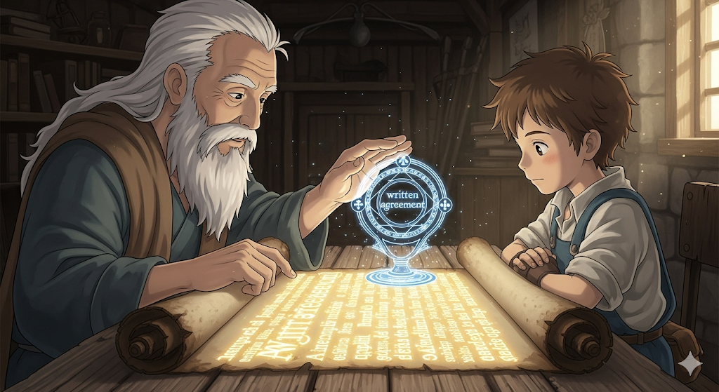 - written agreement예시: A written agreement ensures both parties’ rights.