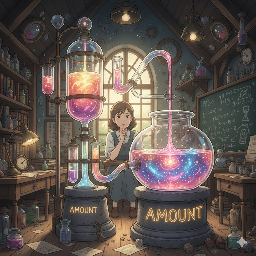 '물질'(material), '돈'(money), '시간'(time), 또는 '에너지'(energy)와 같이 '셀'(count) 수 없는 '것'(uncountable nouns)의 '총합'(sum)이나 '규모'(scale)를 나타내는 '수량'(quantity)을 의미합니다. 단순히 '크기'(size)를 넘어, '특정'(specific) '수준'(level)에 '이르거나'(reach) '총계'가 '얼마'(how much)가 '되는'(result in) 행위에도 사용됩니다.