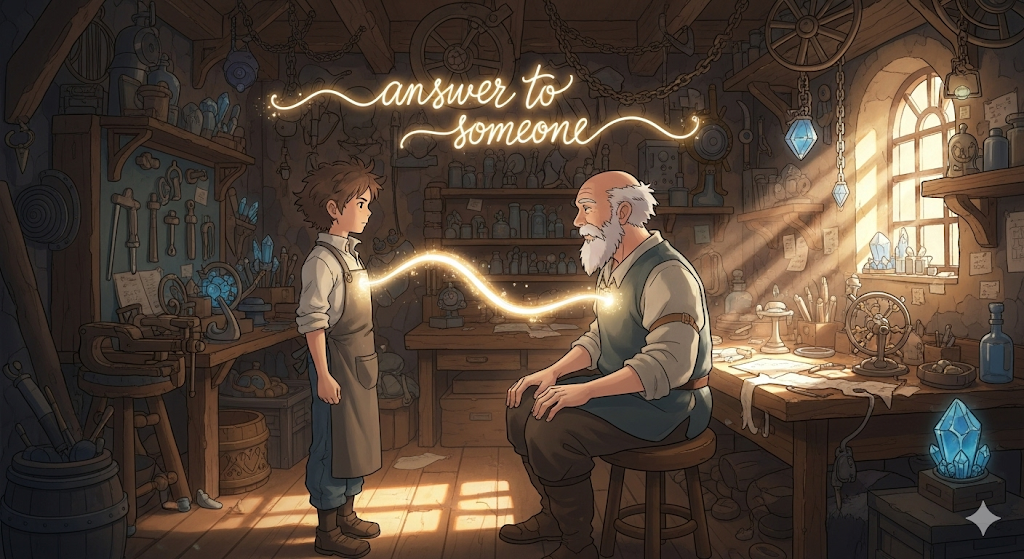 - answer to (someone)