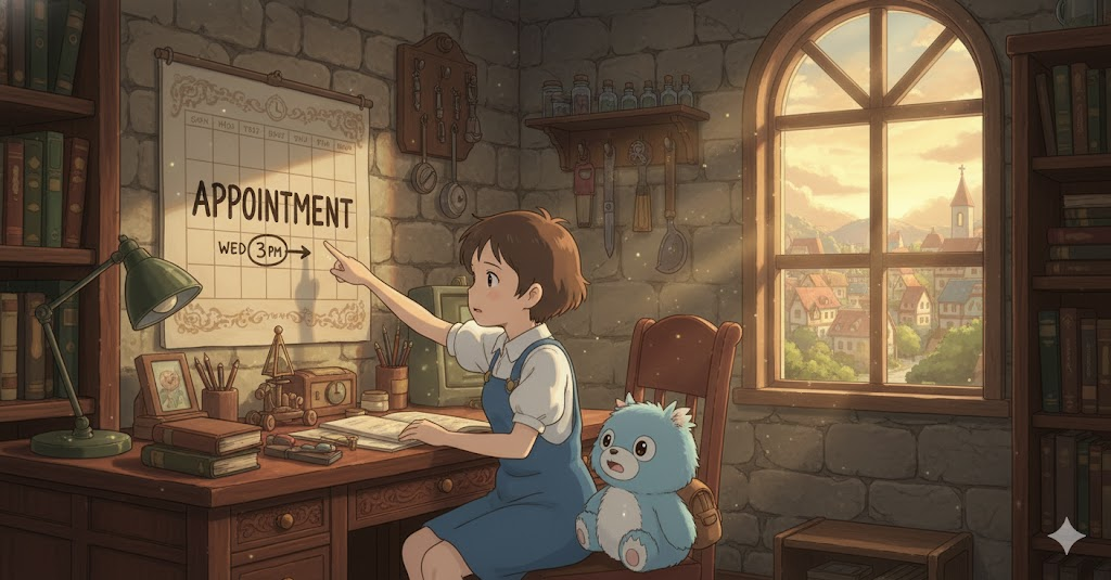 '미래'(future)의 '특정'(specific) '시간'(time)과 '장소'(place)에 '공식적인'(official) '만남'(meeting)을 '계획'(plan)하고 '기록'(record)하는 행위를 의미합니다. '달력'(calendar)에 '정식으로'(formally) '기입'(enter)하여 '일정'(schedule)을 '확정'(confirm)하는 절차에 초점이 맞춰집니다.