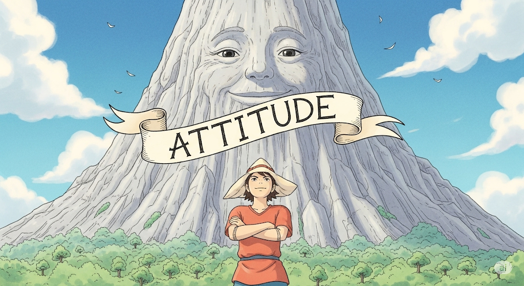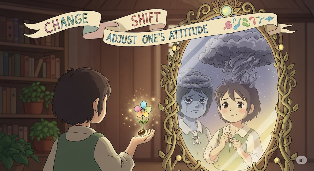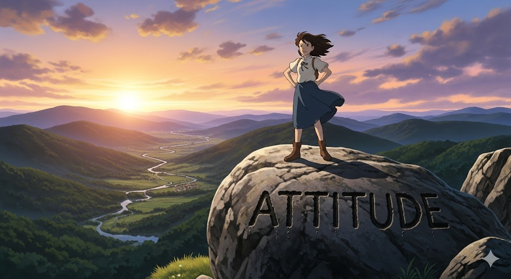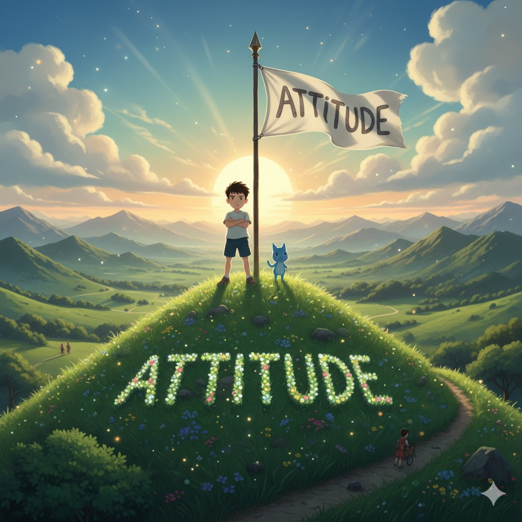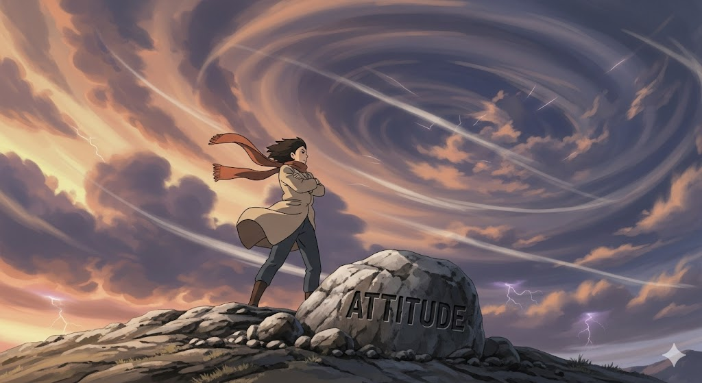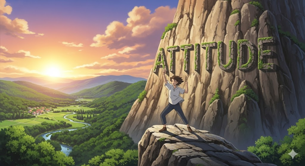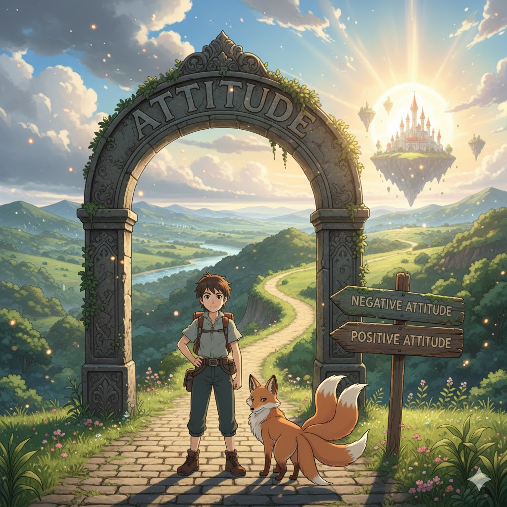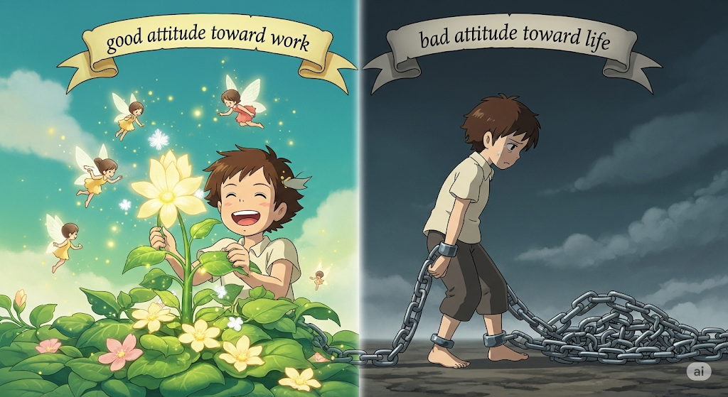 어떤 대상(삶, 일, 친구 등)에 대해 개인이 갖는 긍정적 또는 부정적 마음가짐을 나타냅니다. 이 태도가 해당 대상과의 관계나 결과에 직접적인 영향을 미친다는 점을 강조합니다.