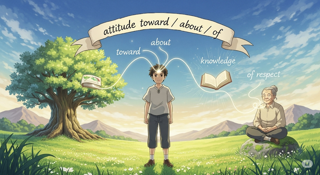 - 예시: His attitude toward learning languages is very serious.