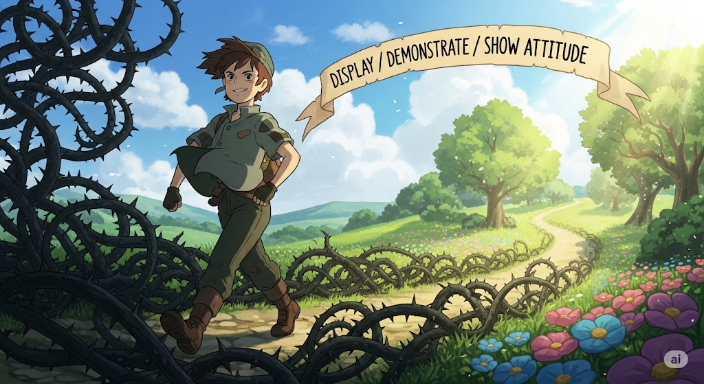 - display/demonstrate/show attitude