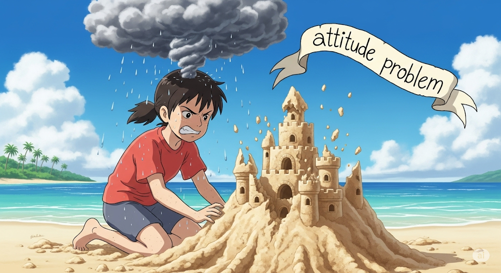 태도 문제. 부정적이고 협조적이지 않은 태도로 인해 어려움을 겪는 것.