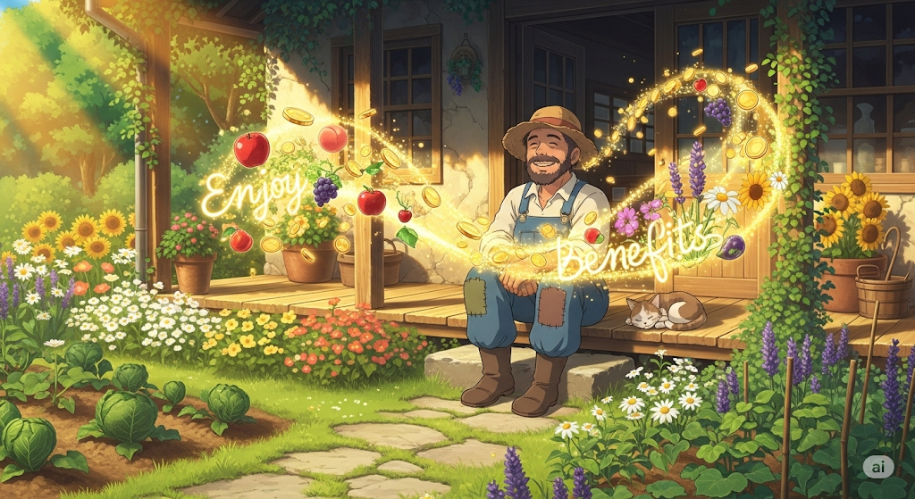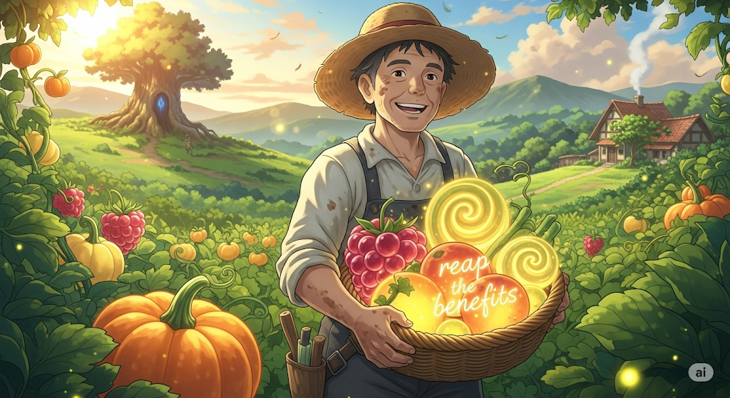 열심히 노력해서 얻은 긍정적인 결과나 보상을 누리는 것을 의미합니다. 마치 농부가 씨를 뿌리고 가꾼 후에 추수하는 것처럼, 수고한 만큼의 대가를 얻는다는 의미를 강조합니다.