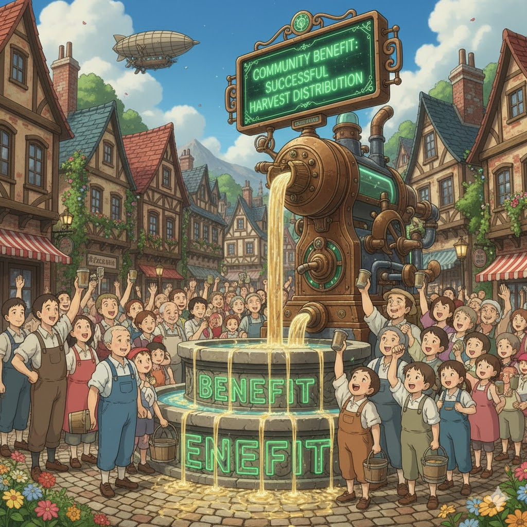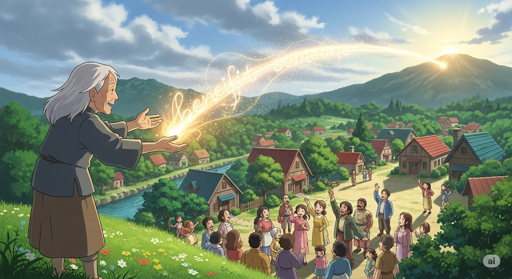 '특정' '결정'(decision), '상황'(situation), 또는 '조치'(action)가 '다른' 사람(person)이나 '집단'(group)에게 '긍정적인'(positive) '결과'(result)나 '이점'(advantage)을 '가져다주는'(bring) 행위를 의미합니다. '호혜적'(reciprocal)이거나 '이타적'(altruistic)인 '작용'(effect)에 초점이 맞춰집니다.