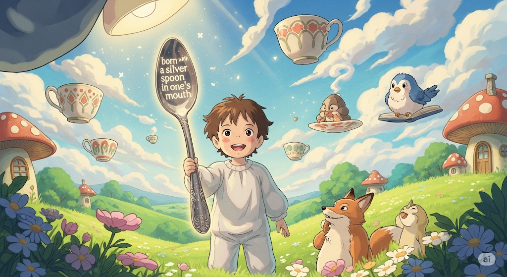 - 예문: He was born with a silver spoon in his mouth and never had to work hard. (그는 부유한 집안에서 태어나서 열심히 일할 필요가 없었다.)
