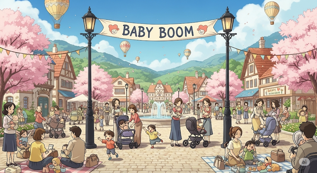 - 뜻: 출산 붐, 한 시기에 아기가 대량으로 태어나는 현상