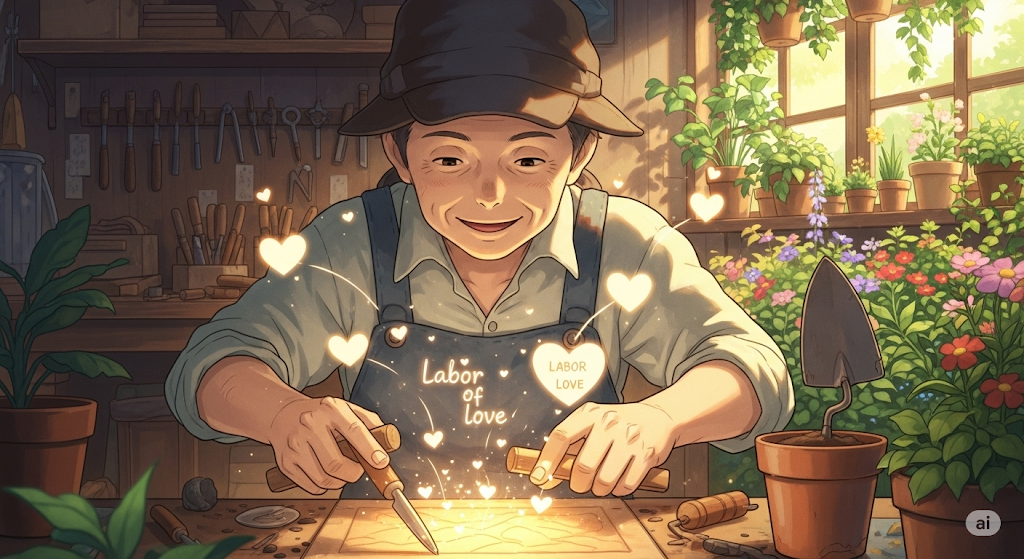 - 뜻: 사랑으로 하는 일, 보람을 느끼면서 하는 고된 일
