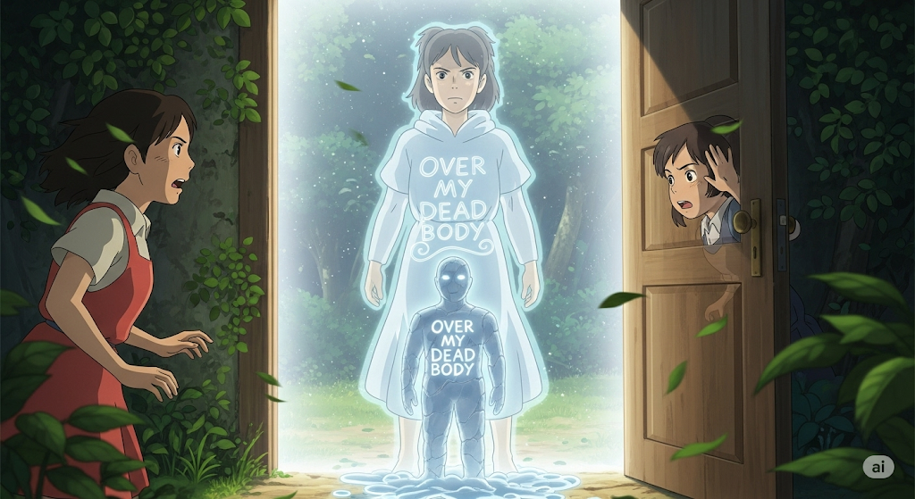 자신이 죽는 한이 있더라도 절대로 허락할 수 없다는 강한 거부의 의미를 담고 있습니다. 무언가를 막기 위한 마지막 수단이자 강력한 의지를 나타냅니다.