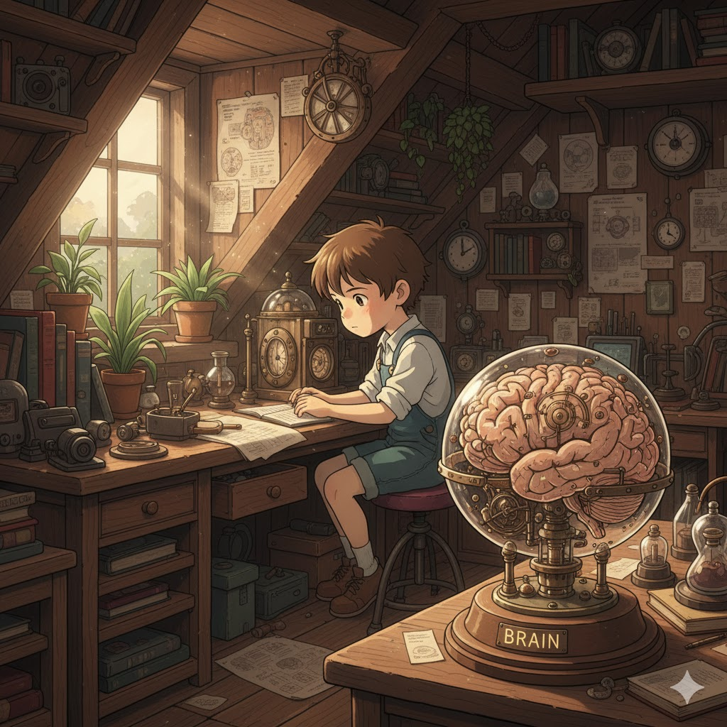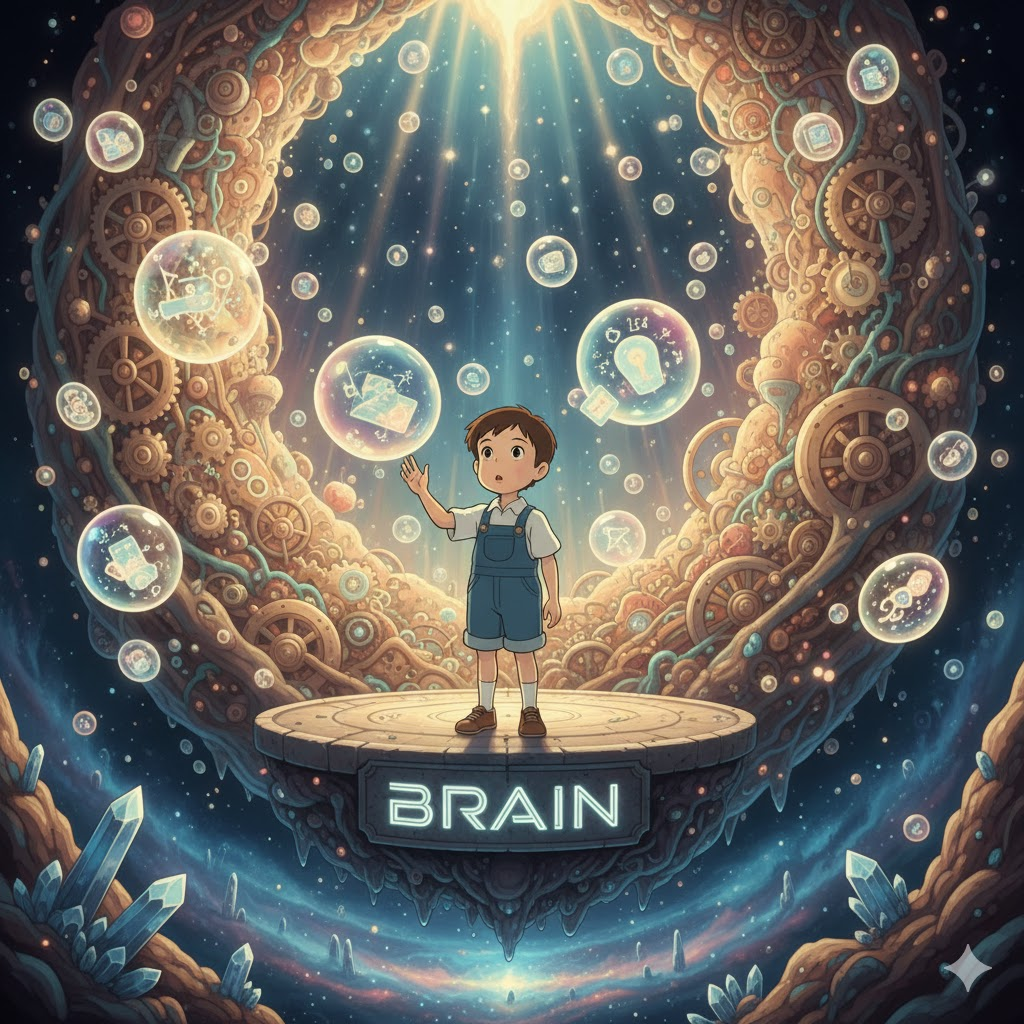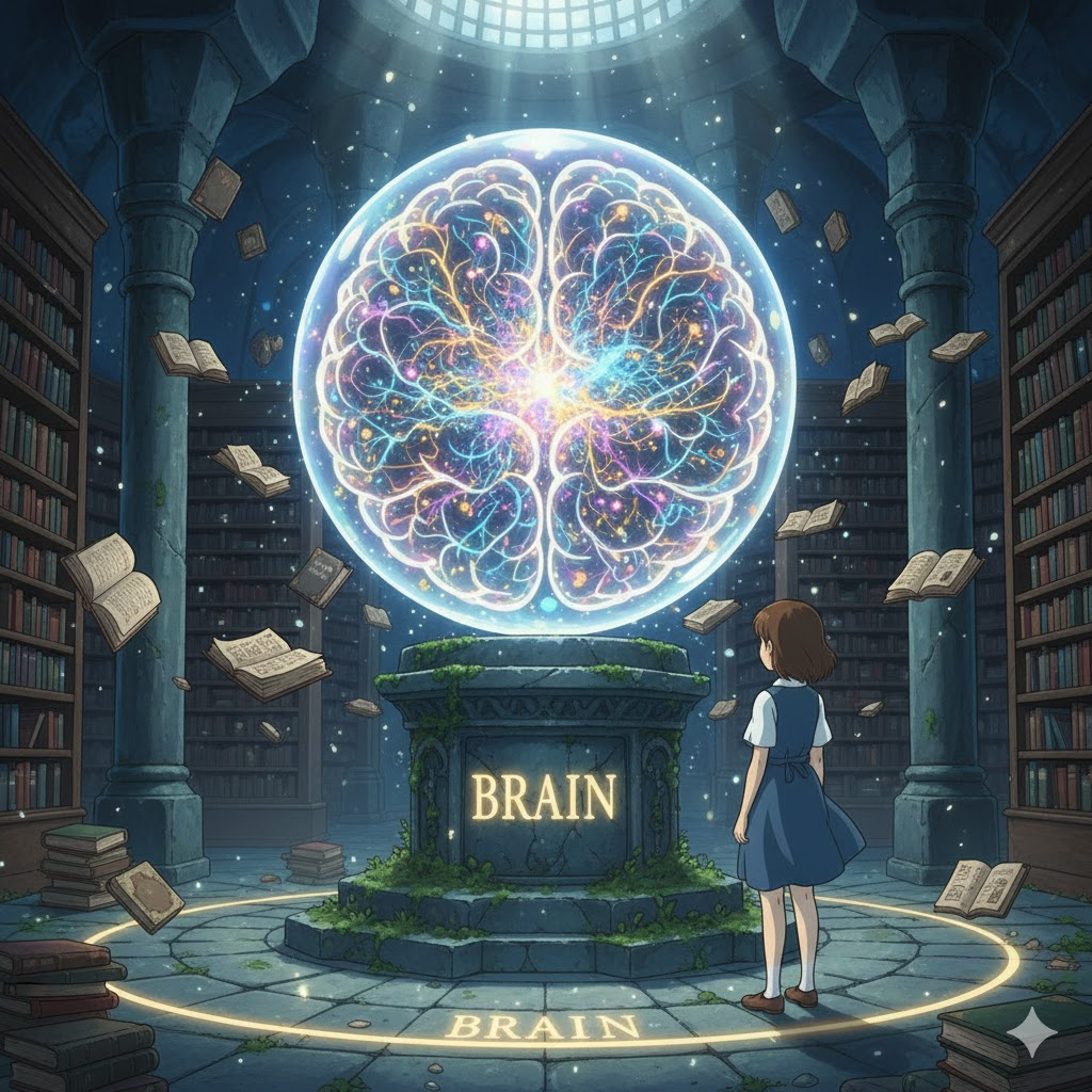 '인간'(human)이나 '동물'(animal)의 '머리'(head) '속'(inside)에 '위치'(location)하여 '사고'(thought), '감정'(emotion), 그리고 '신체'(body) '기능'(function)을 '조절'(control)하는 '중추'(central) '기관'(organ)을 의미합니다. 단순히 '물리적'인 '장기'를 넘어, '지능'(intelligence), '창의성'(creativity), 또는 '문제'(problem) '해결'(solving) '능력'(ability)을 비유적으로 나타내는 데 초점이 맞춰집니다.