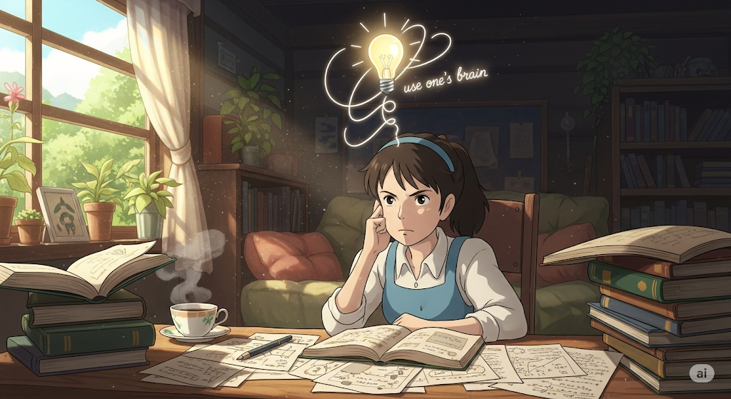 - *'use one's brain'**은 어떤 상황에 대해 더 깊이 고민하고 이성적으로 판단하라는 조언을 할 때 사용되는 직접적인 표현입니다.