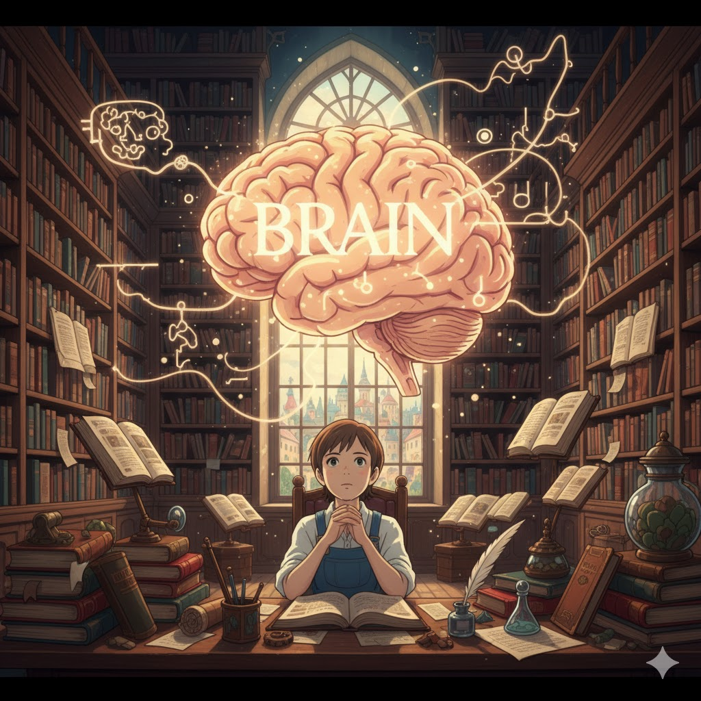 고대 영어 brægn ("뇌")에서 유래 → 게르만어 bragnam과 관련 → 원래 **'머리 안에 있는 사고와 감각의 기관'**을 의미했음 → 이 의미가 현대 영어에서 '사람이나 동물의 생각, 감각, 운동을 관장하는 기관' (뇌, 두뇌) 명사로 발전함. 나아가 '사고하고 배우는 능력' (지능, 지력), 그리고 '어떤 일의 아이디어를 내고 주도하는 사람' (핵심 인물, 주도자)의 의미를 가지게 되었어요. 즉, **'사고와 감각의 물리적 기관, 그 기관의 능력, 또는 지적인 활동의 중심'**을 나타내는 핵심 단어예요.
